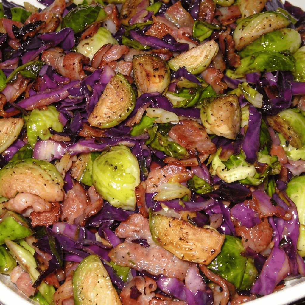 Crispy Brussels Sprouts and Red Cabbage with Bacon