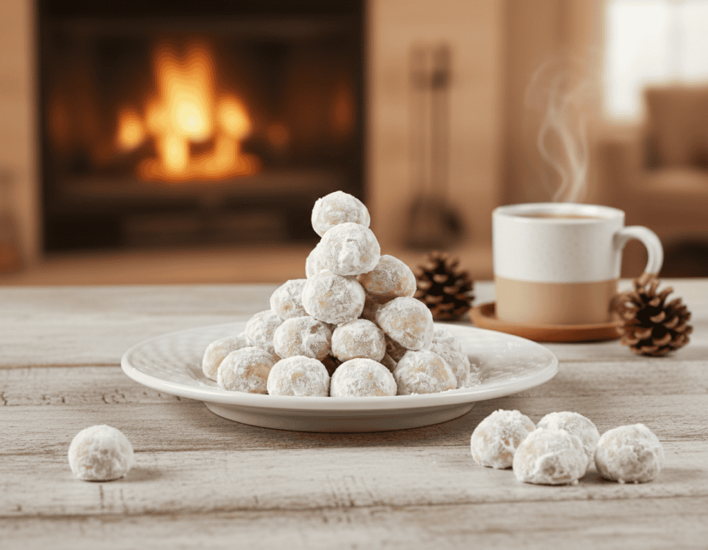 - Once they've cooled, arrange your snowball cookies on a festive plate, and they're ready to serve!